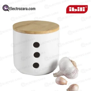 Ibili 715110 Pot à ail en céramique avec couvercle en bambou 12 cm